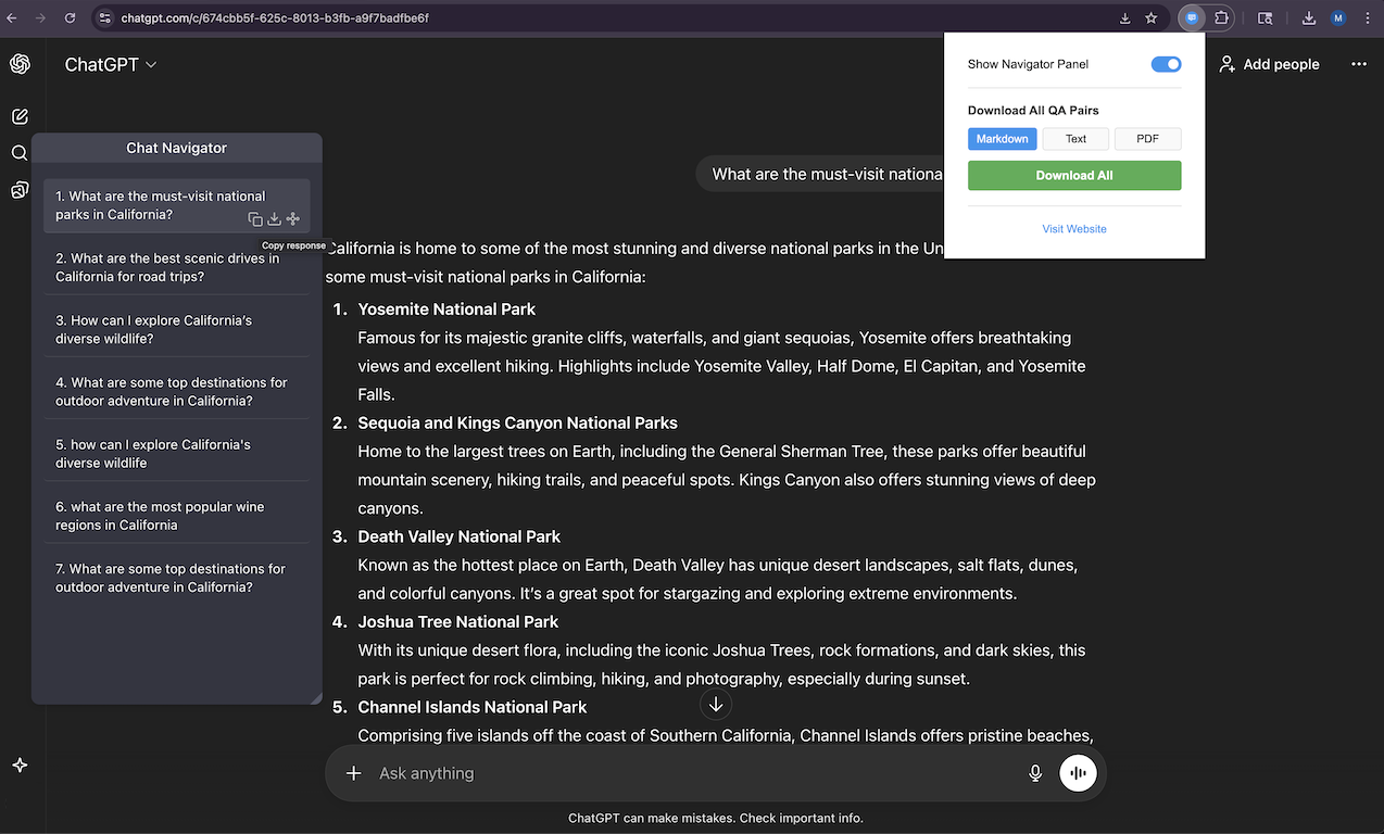 - Added hover sub-panel showing a structured outline for each AI response, making it easy to scan and jump to any response section.