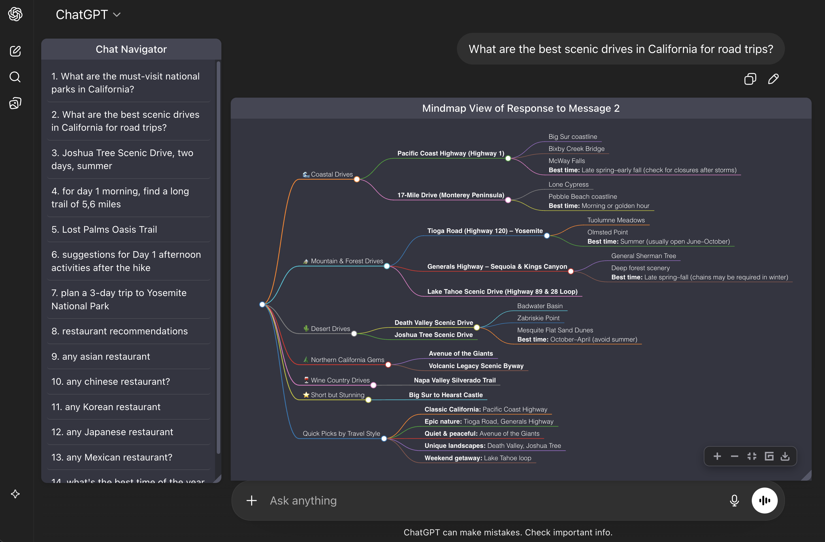 - Mindmap visualization for conversations.